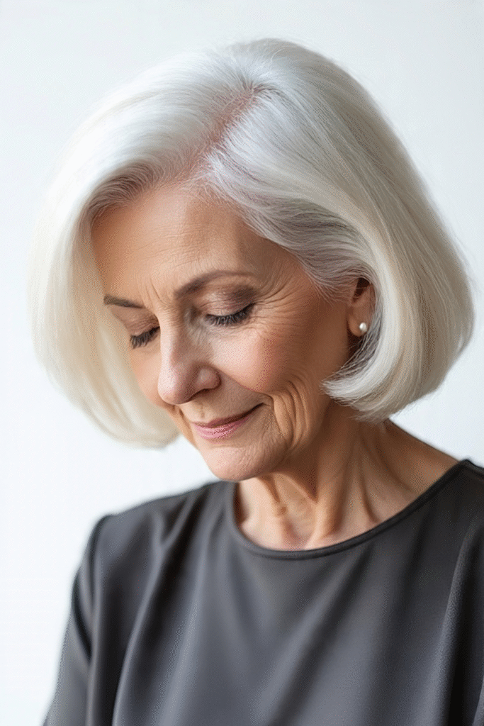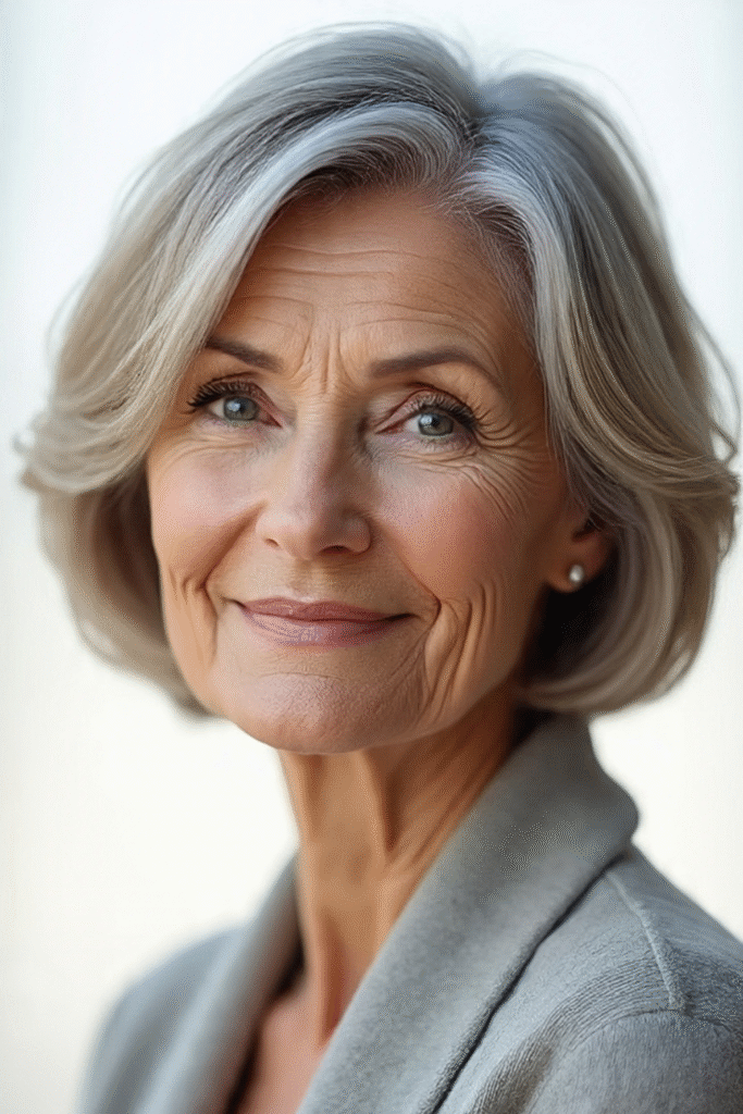 El bob clásico sigue siendo una elección perpetuamente elegante que funciona maravillosamente para mujeres mayores de 60, ofreciendo elegancia a la altura de la mandíbula que se adapta a texturas de cabello liso, ondulado o rizado.