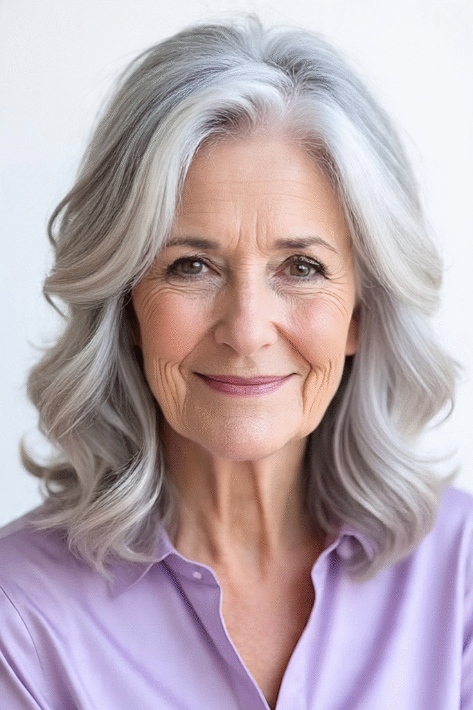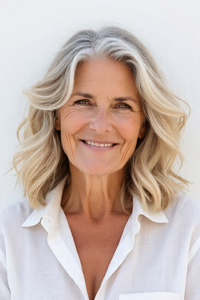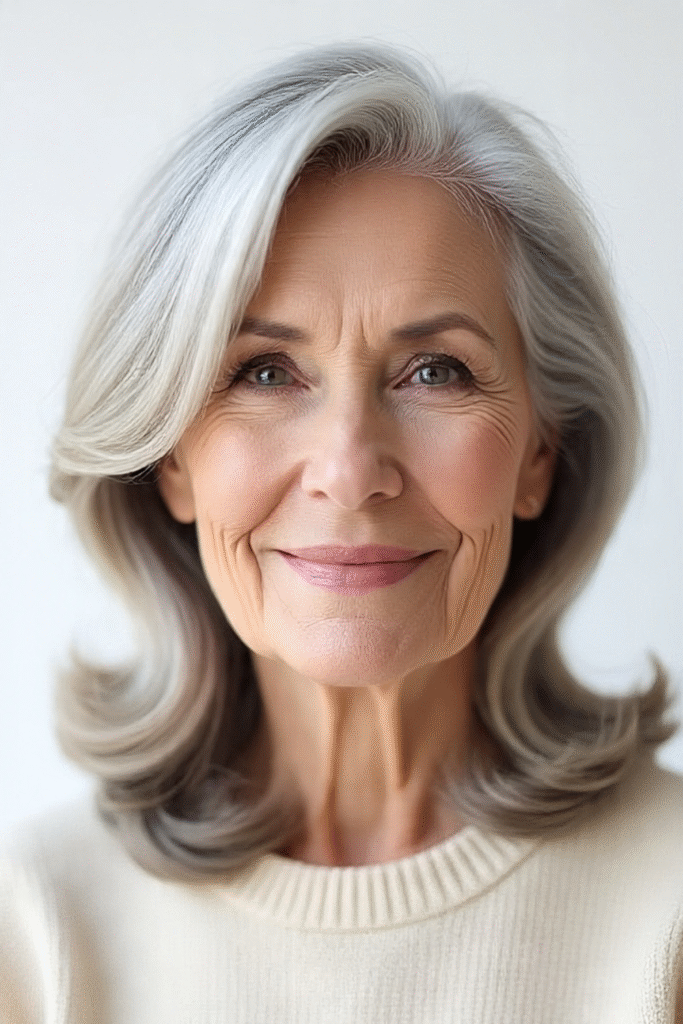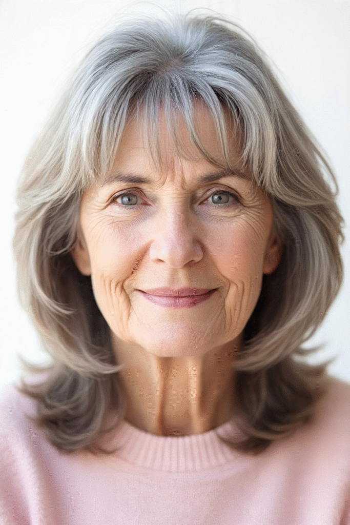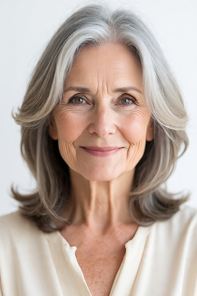 Los peinados de longitud media son particularmente favorecedores para mujeres mayores de 60 porque enmarcan el rostro hermosamente, se adaptan a los cambios en la textura del cabello y realzan la belleza natural del cabello plateado o el color aplicado expertamente. Ya sea que estés abrazando tu gris natural o añadiendo reflejos sutiles, estos cortes versátiles pueden peinarse para adaptarse a cualquier ocasión, desde el uso casual diario hasta eventos especiales.
