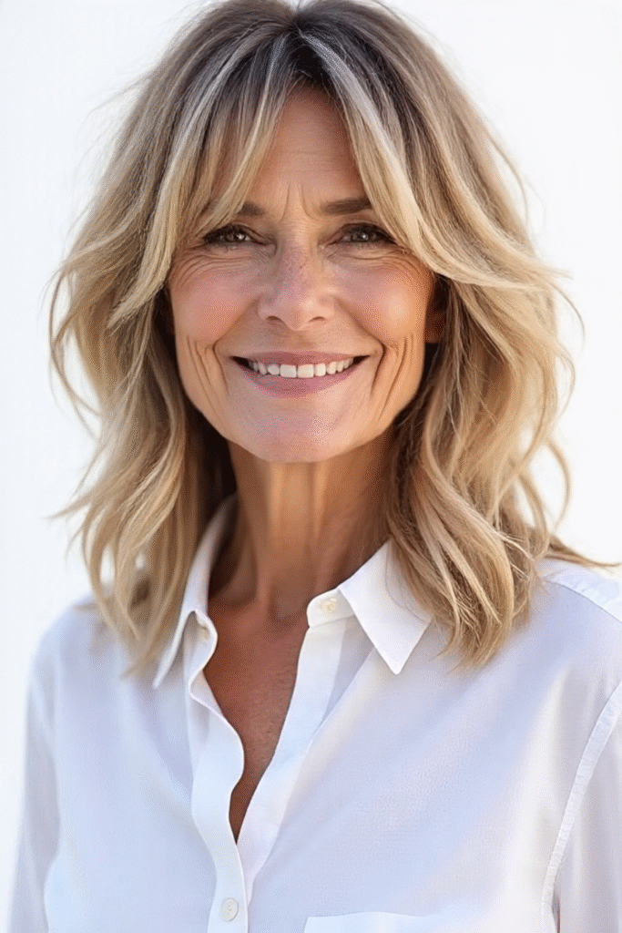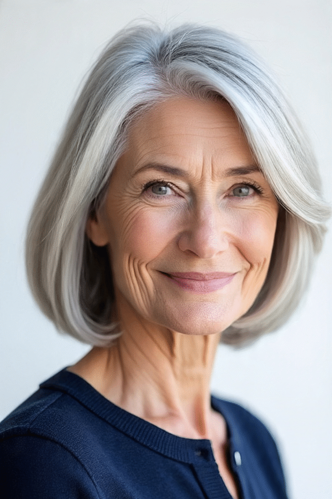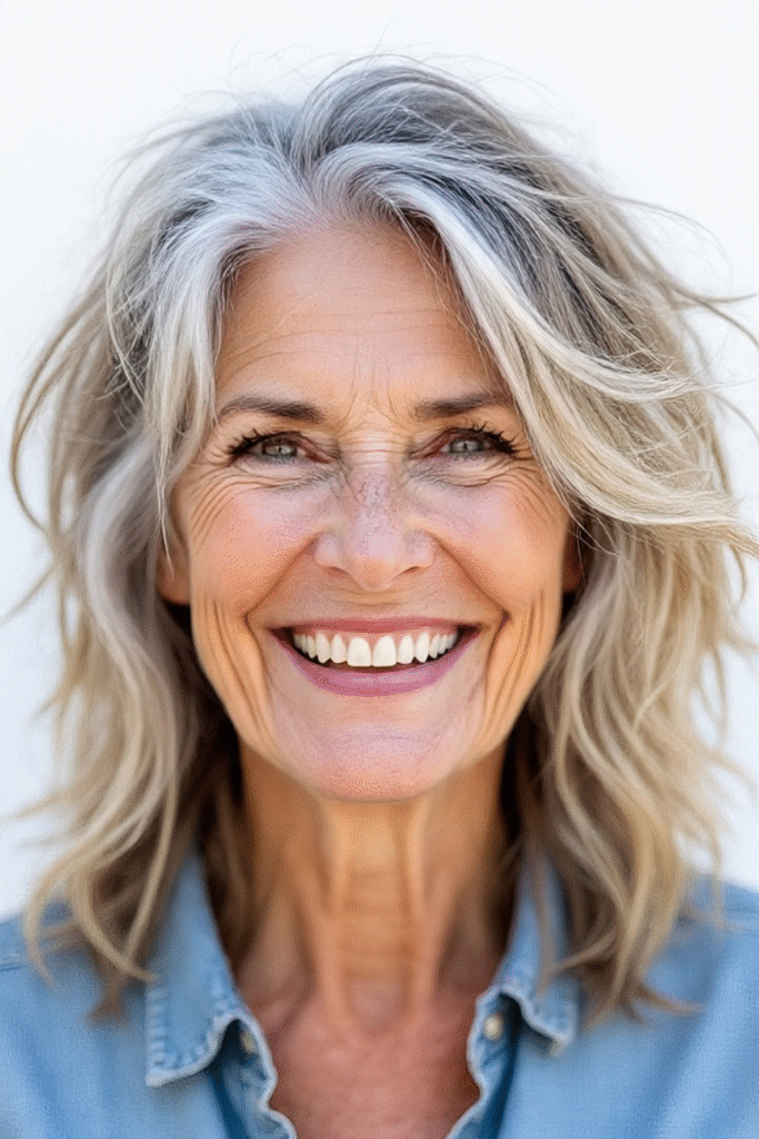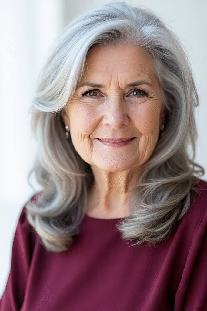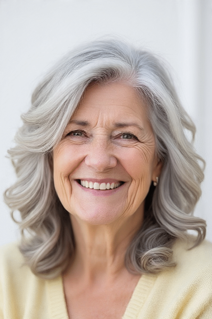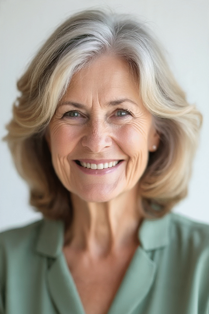 Los peinados de longitud media son particularmente favorecedores para mujeres mayores de 60 porque enmarcan el rostro hermosamente, se adaptan a los cambios en la textura del cabello y realzan la belleza natural del cabello plateado o el color aplicado expertamente. Ya sea que estés abrazando tu gris natural o añadiendo reflejos sutiles, estos cortes versátiles pueden peinarse para adaptarse a cualquier ocasión, desde el uso casual diario hasta eventos especiales.